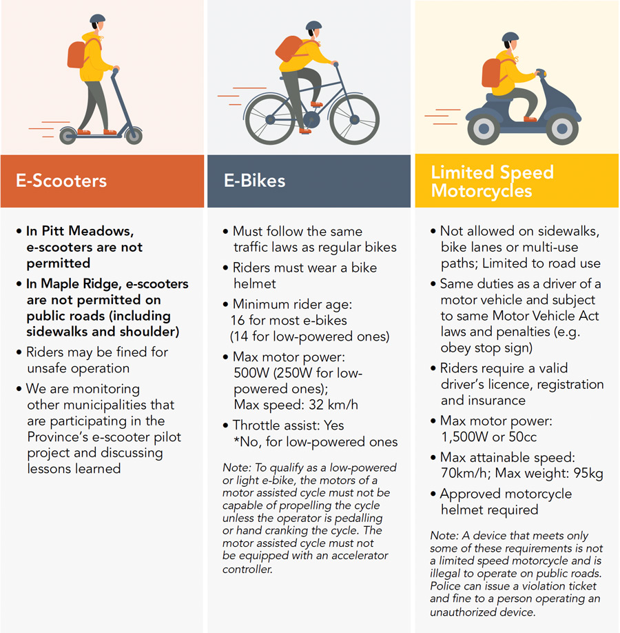 The District Parent Advisory Council is hosting a virtual information session at 7 pm on November 26 about the rules and safety requirements for e-bikes, e-scooters and low-powered motorcycles in Maple Ridge and Pitt Meadows.