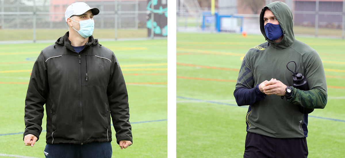 Ordinarily, the class is held in a high-end weight-room. But due to physical-distancing protocols, the students have been conducting their workouts in the elements on the school’s turf field.