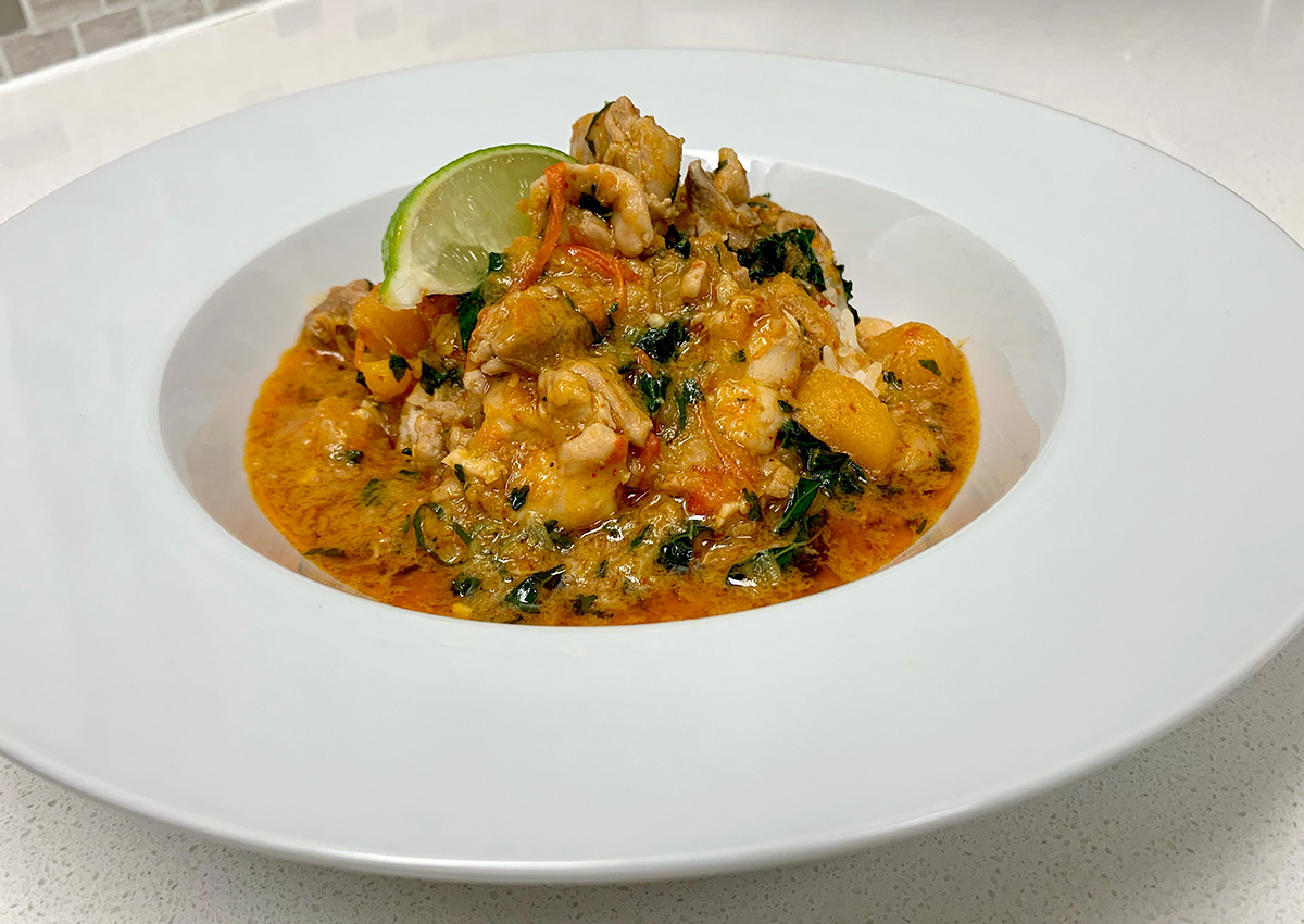 For the recipes, he settled on a delicious B.C.-inspired Thai chicken curry with a vegan option for the main course. For dessert, students will learn how to make a baked lemon pudding with blueberry compote.