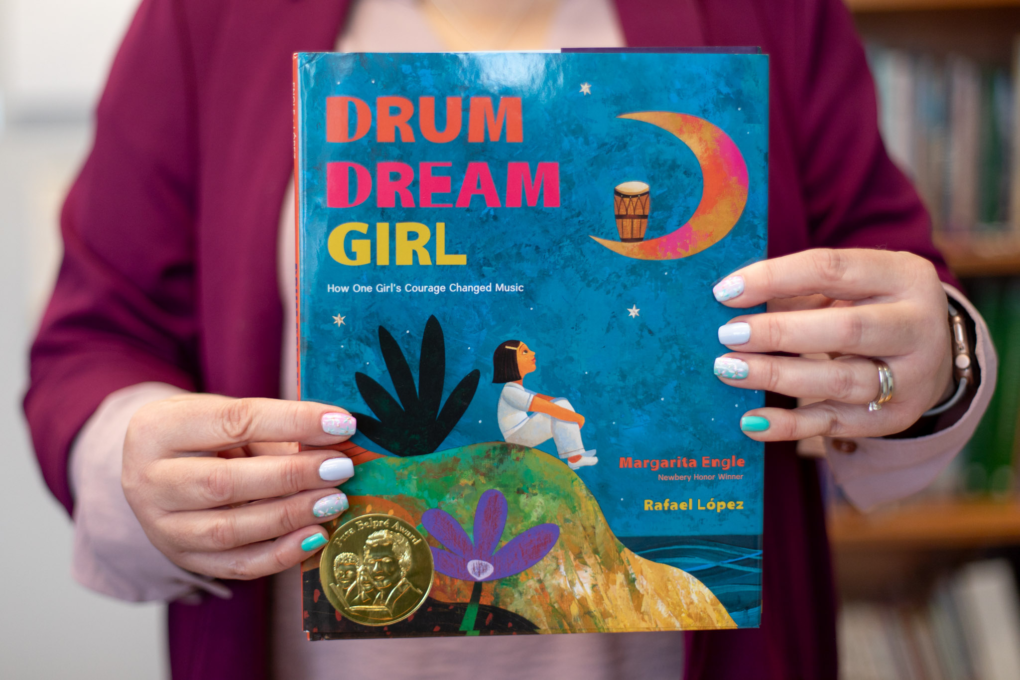 Deputy Superintendent Cheryl Schwarz recommends Drum Dream Girl: How One Girl’s Courage Changed Music by Margarita Engle and illustrated by Rafael López for International Women’s Day.