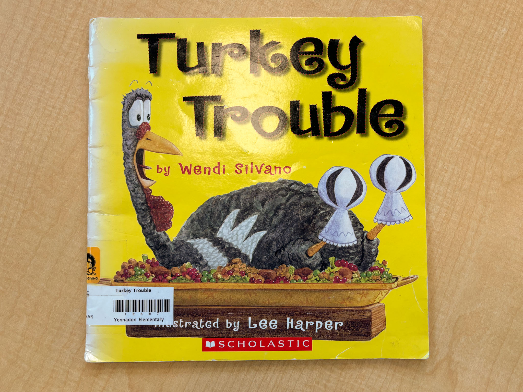 Yennadon Elementary teacher-librarian Candace White recommends Turkey Trouble by Wendi Silvano for Thanksgiving.