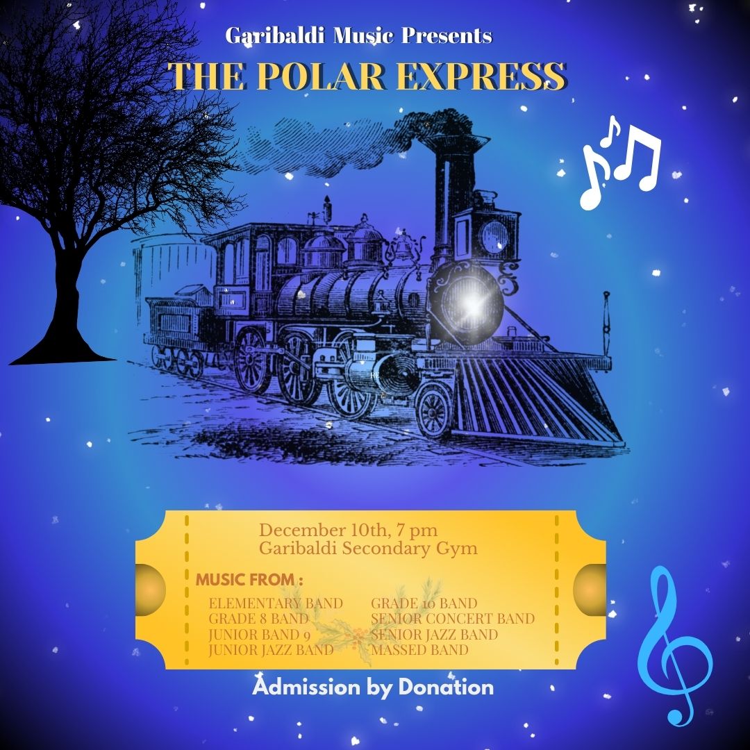 The Polar Express will feature performances by concert and jazz bands from the elementary and secondary levels. This includes Grade 8 Band, Junior Band 9, Junior Jazz Band, Grade 10 Band, Senior Concert Band, Senior Jazz Band, and an elementary band made up of students from Blue Mountain, Alexander Robinson, Whonnock, Webster’s Corners, Albion, and Yennadon.