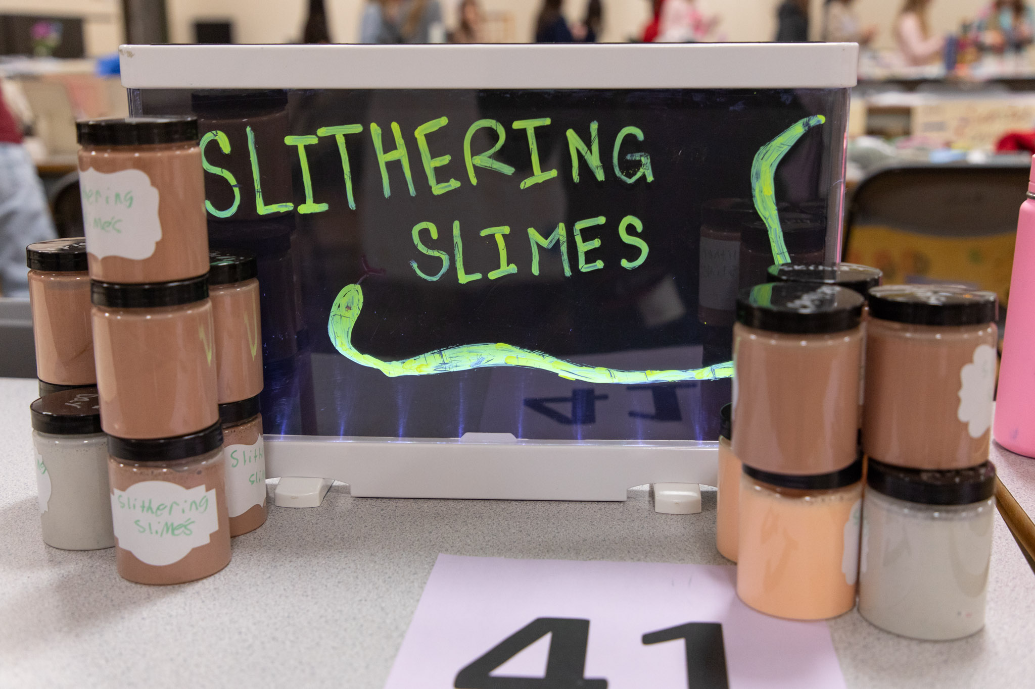 More than 150 students from grades 4 to 7 took part in the fair, selling handmade products like slime, fidget toys, stickers, lip gloss, soap, magnets, artwork and clay figurines.