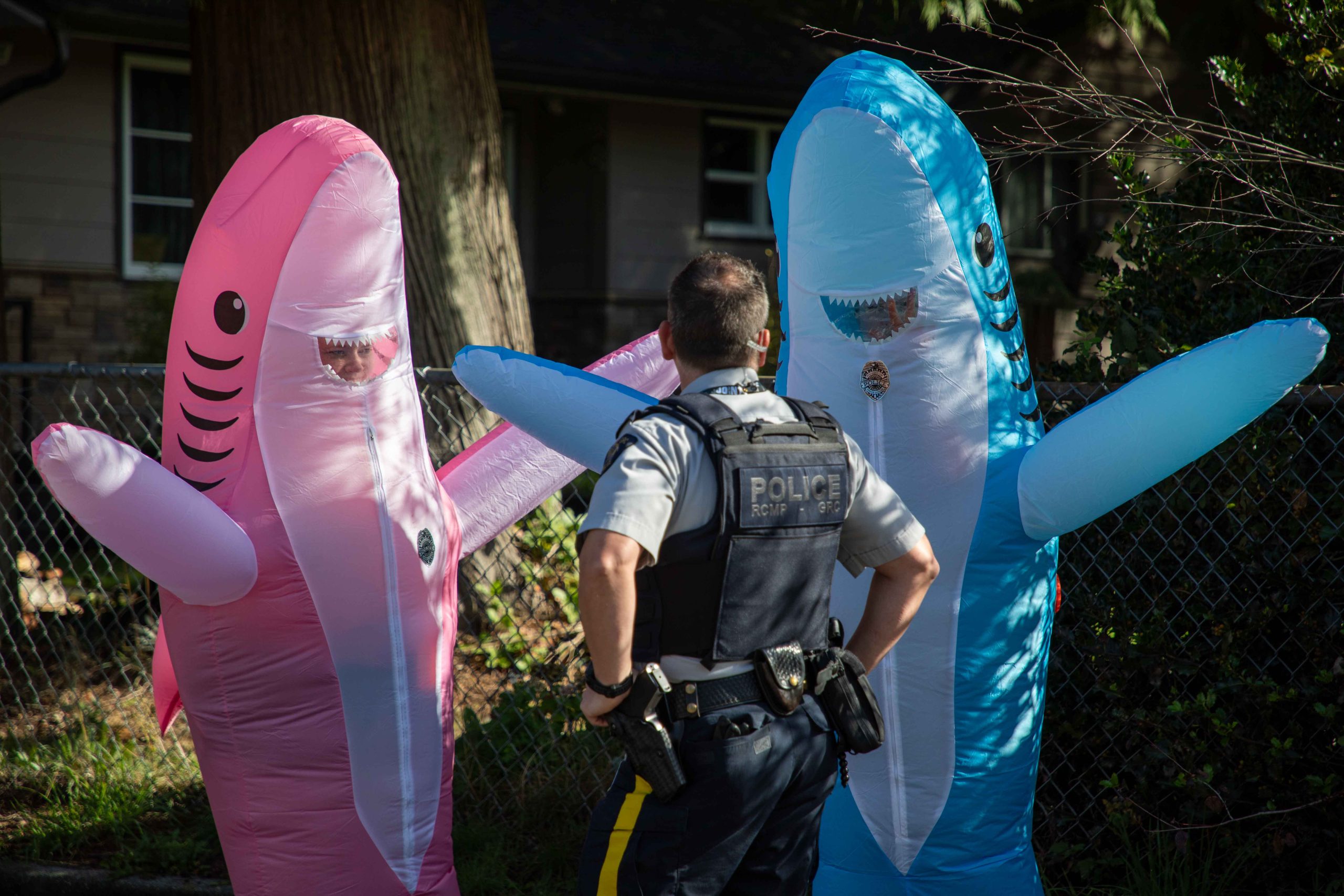 Ridge Meadows RCMP also joined in on the fun during the run by bringing along two officers in shark costumes.