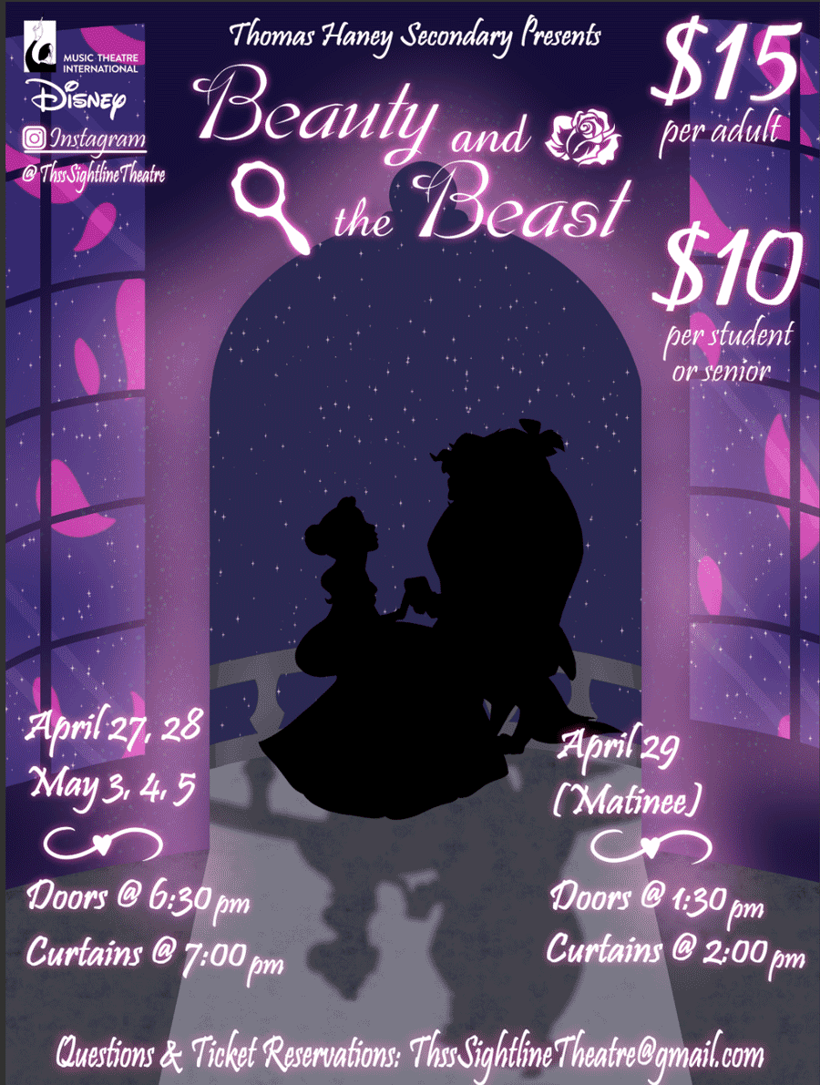 THSS Sightline Theatre students would like to invite the community to come see their production of the newly revised, full version (not Jr.) musical Beauty and the Beast. Seating capacity is limited and tickets are selling fast, so get yours today