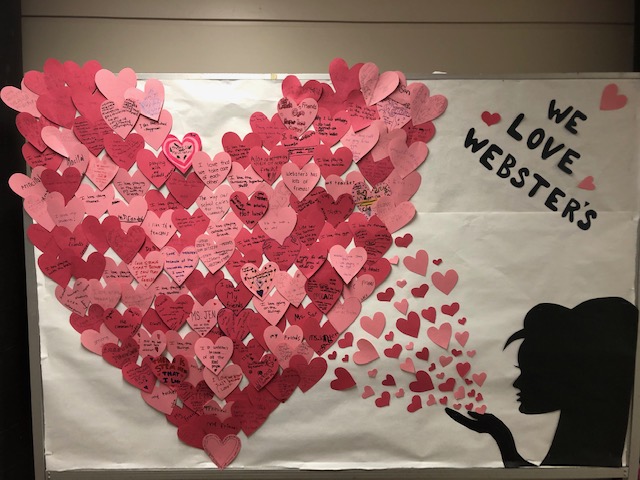 At Webster’s Corners Elementary, students have filled out a heart saying why they love Webster’s Corners, which is displayed on a wall at the entry way of the school.