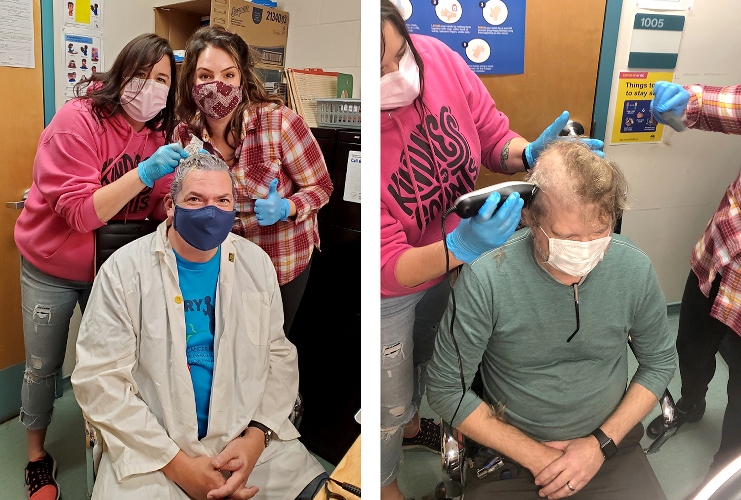 Students at Alexander Robinson Elementary raised $2,700, breaking the school’s $2,300 goal. For their effort, students were rewarded with a showing of principal Adam Stanley having his hair dyed blue live on Zoom, while teacher Todd Oleksyn shaved his head.