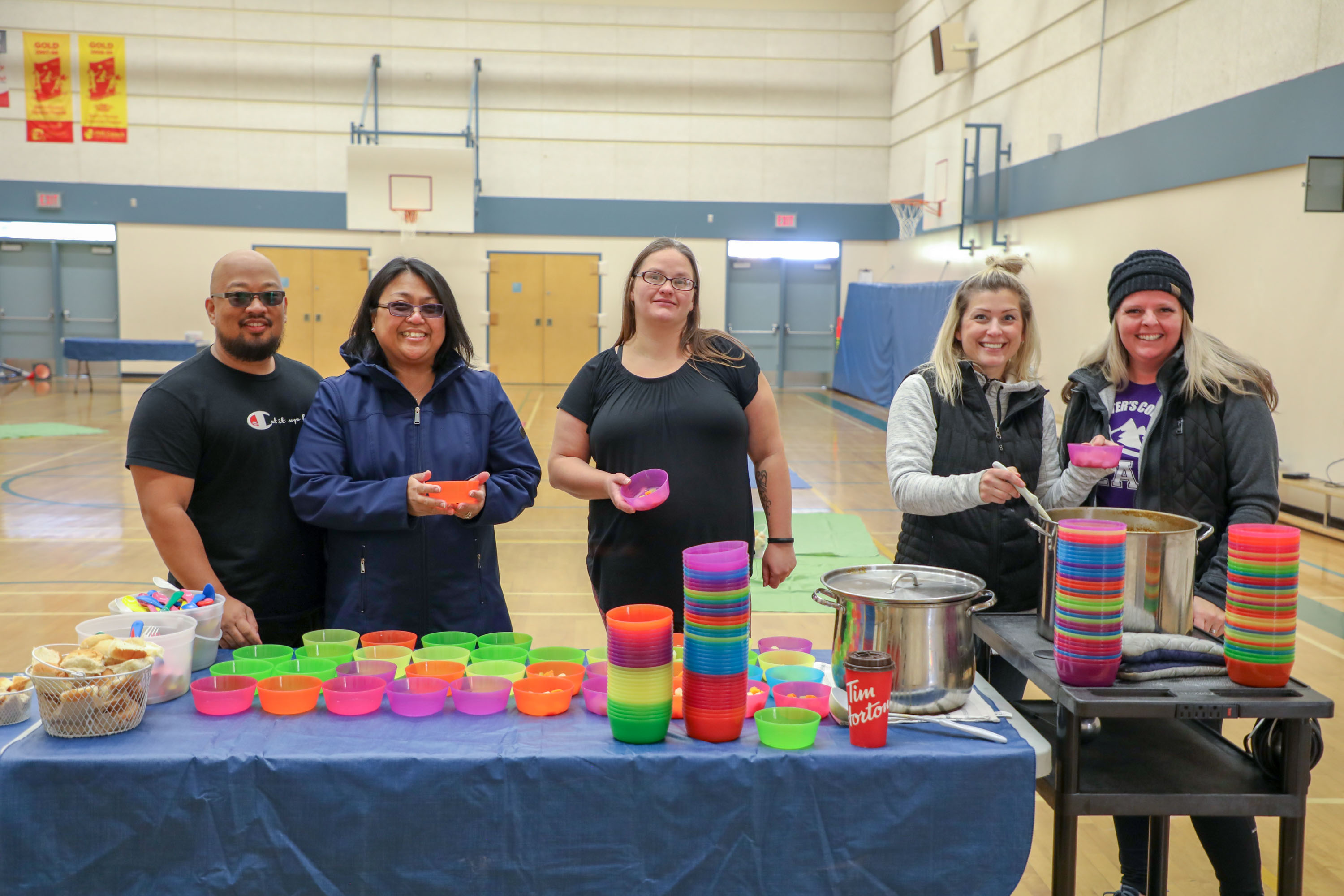 Teachers and educational assistants led the students in the meal preparation, and the Parent Advisory Council (PAC) pitched in by helping to cook and serve lunch.