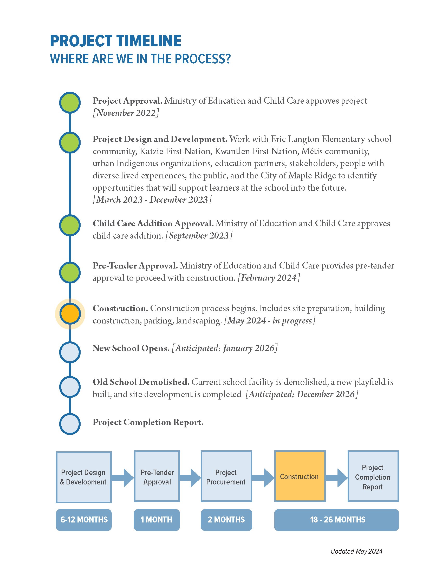 In November 2022, the Ministry of Education and Child Care announced funding for a new and expanded Eric Langton Elementary school. Construction on the new building will start in May 2024, and the new school is expected to be ready for occupancy by June 2026.