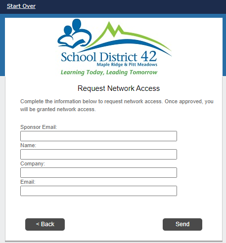 5. Enter the district employee’s email who is sponsoring your access and fill in the rest of the fields with your information.