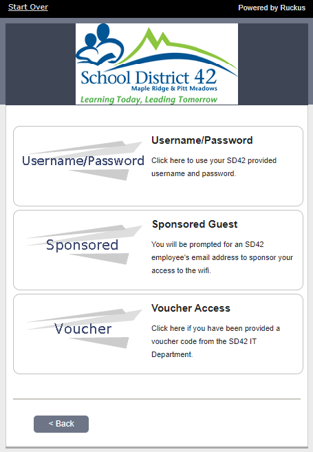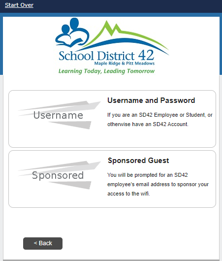 These steps are aimed at Staff, Students, and those who otherwise have a SD42 username + password. If you do not please see our “SD42 Guest Sponsored Access” option.