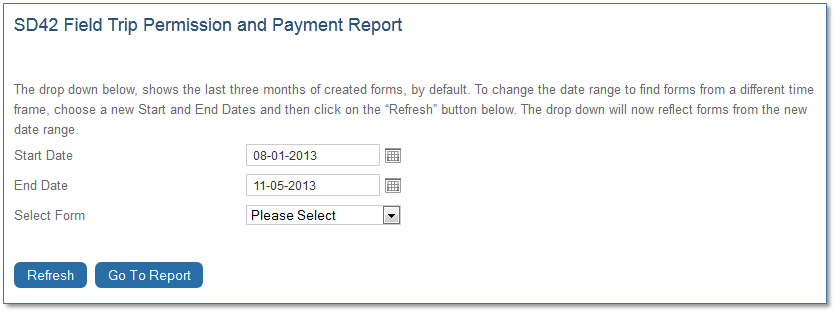 - Select the desired Field Trip form by title, from the Select Form drop-down