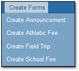 - A staff member (teacher/secretary) proposes a form using the Create Forms menu item in their staff interface (Figure 1)