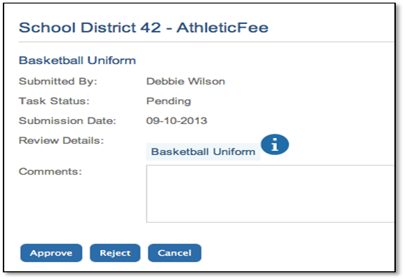 • A Reject button to reject the request and send a comment back to the proposer (Figure 3) - Cancel button to defer and review for later
