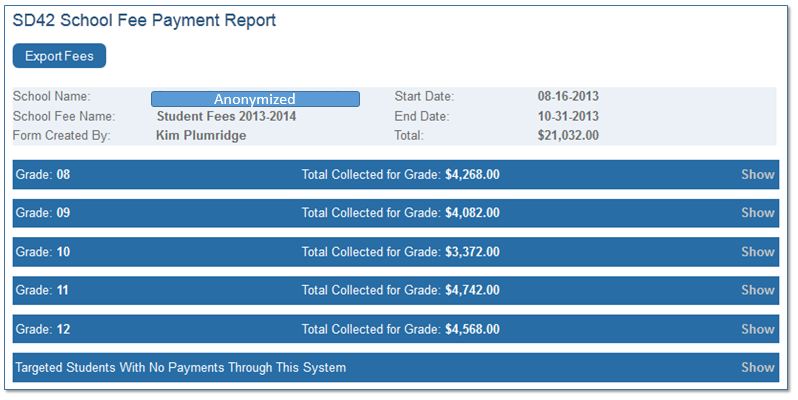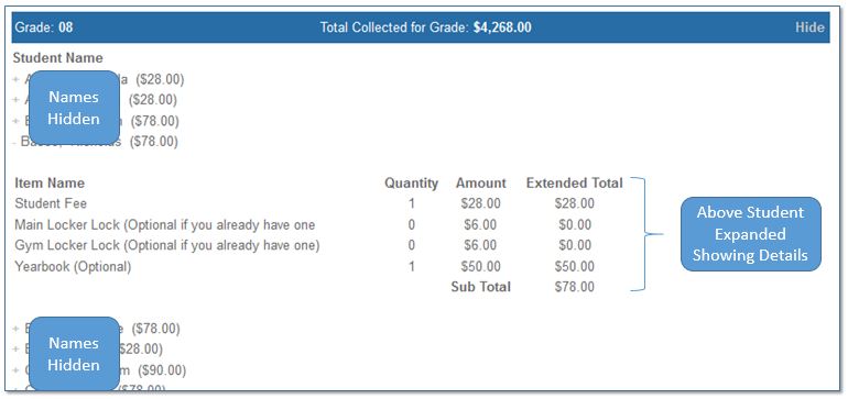If you expand a grade, you can see student details of who has paid and for what (Figure 3)