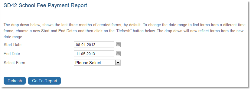 - Select the desired School Fee form by title, from the Select Form drop-down