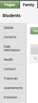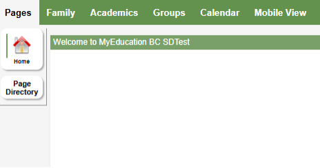 There are 6 Top Tabs on the main page: Pages, Family, Academics, Groups, Calendar, and Mobile View.