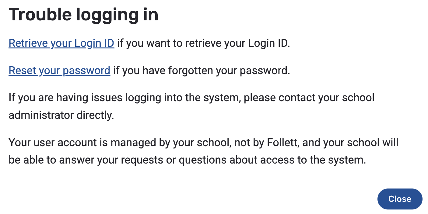 If you have logged in before but are having trouble accessing your account, use the Trouble logging in? option (see screenshot below) to recover your login ID or password.
