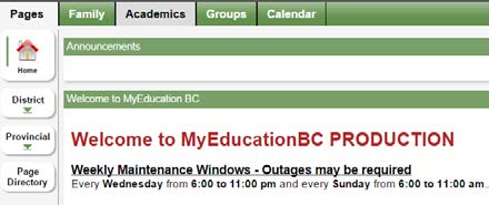 Go to the MyClass page (Parents Tab) to log in or to SD42 to connect to MyEducation BC.
